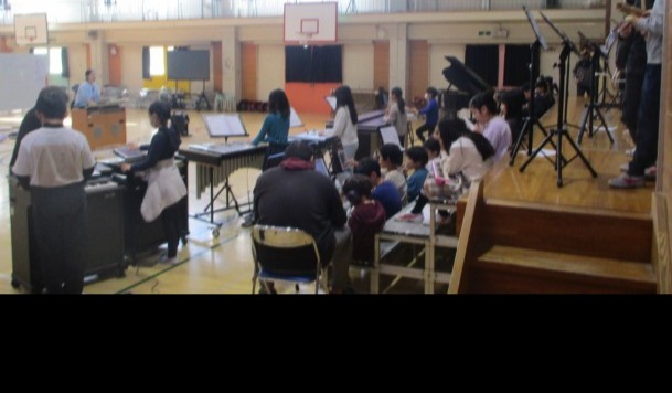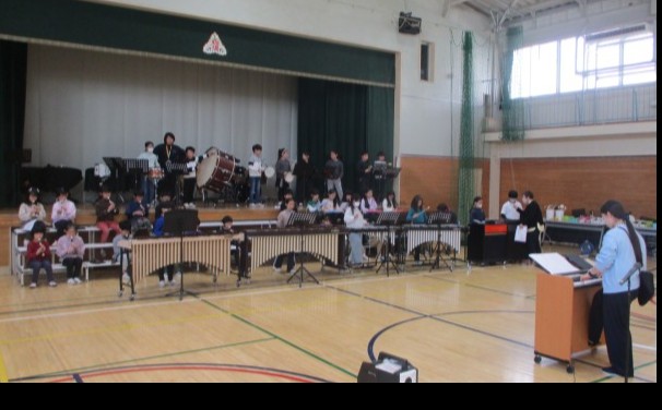 学年合同で合奏と合唱を息を合わせて練習しています。