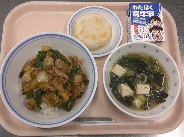 11月26日 キムチ丼 わかめスープ チーズホットク 牛乳