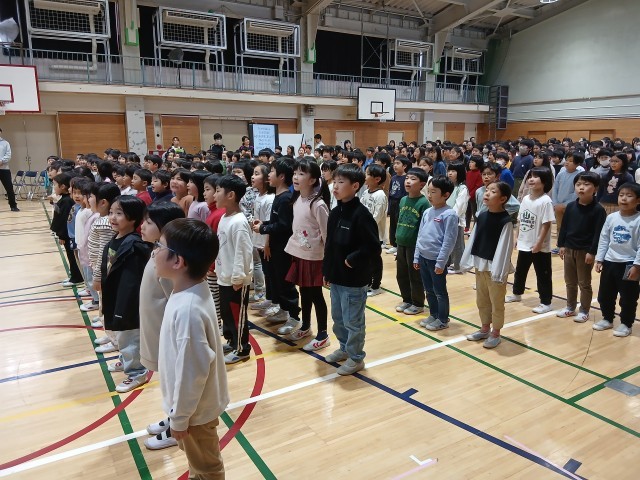 今週末のミュージックフェスタに向けて、2回目の全校合唱の練習をしました。