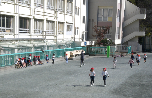 ぐっと冷え込みよく晴れた日。はじめは冷たい風に「寒い!」と言っていた子どもたちですが、走り始めると半そでも気にならないくらい体がぽかぽかになり、今度は「あつい、あつい」という楽しそうな声が聞こえてきました。