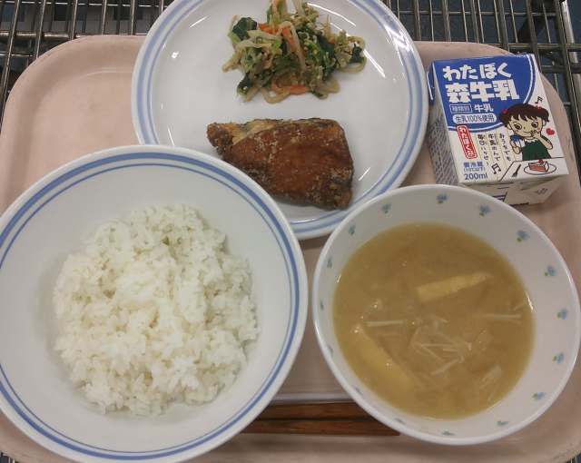 12月12日 ごはん みそ汁 魚の竜田揚げ ごまあえ 牛乳