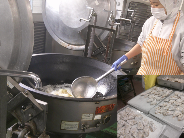 魚の竜田揚げは、今日はカツオをつかいました。しょうゆ・しょうが・酒で下味をつけ、かたくり粉をまぶして油で揚げました。竜田揚げは、赤褐色に揚がり、ところどころにかたくりこの白い部分があることから、もみじのながれる竜田川にみたてて命名されたそうです。教室掲示用のおたよりにもそのことを書きました。味が染みて、食べやすいごはんのおかずになりました。ごまあえは、小松菜・にんじん・もやしをそれぞれ茹でて冷やし、練りごま入りのたれを作り直前に混ぜました。炒った白ごまを入れて仕上げました。ごまの甘みと甘辛いたれがおいしいあえ物です。みそ汁は、大根・油揚げ・えのきたけの具です。一汁二菜の和食献立です。今日もよく食べてくれました。