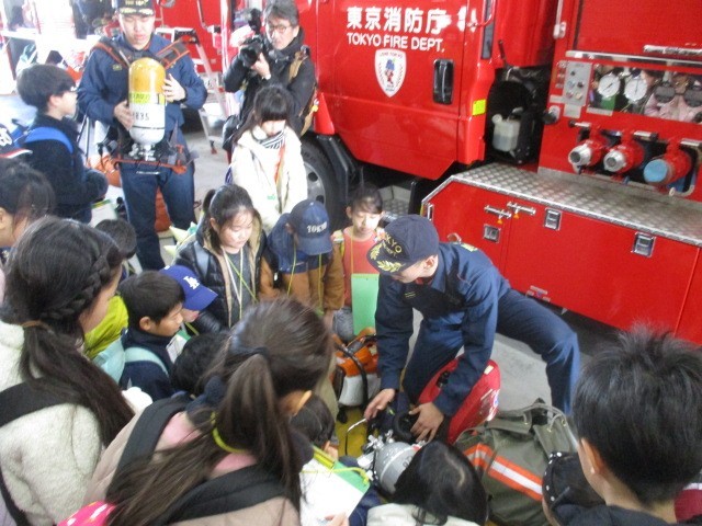 社会科見学で目黒消防署、目黒不動尊、五百羅漢寺などに行ってきました。