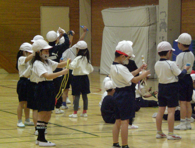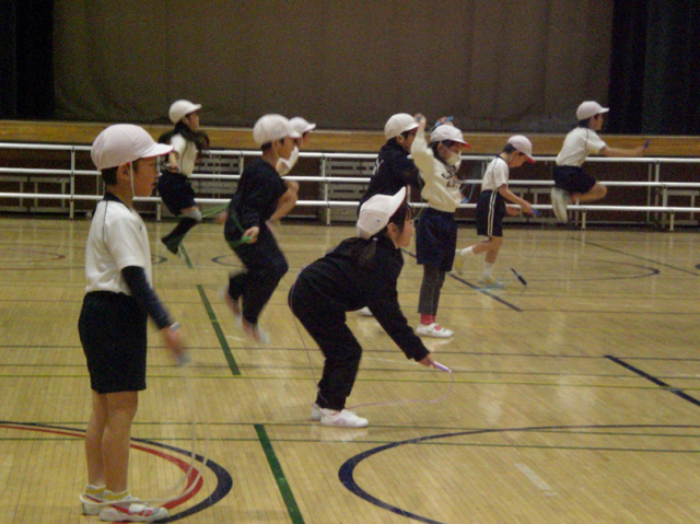 事故のないよう、縄の扱い方を学んだ後、いよいよなわとび開始です。