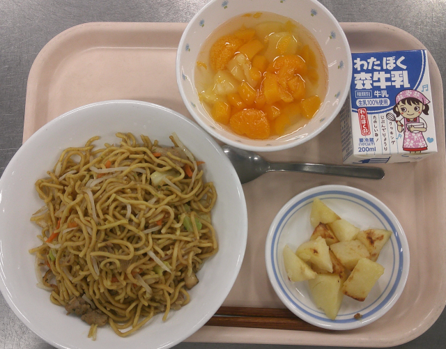 1月28日 ソース焼きそば じゃがバター フルーツポンチ 牛乳