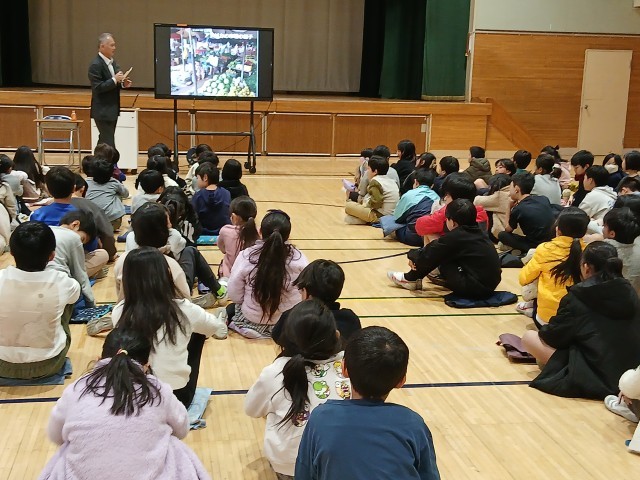 今日は、JICAの田中様が学校に来てくださり、5・6年生と3年生に、アフリカやイラン、パレスチナで行った活動やなぜその活動が必要なのかについて、お話しくださいました。