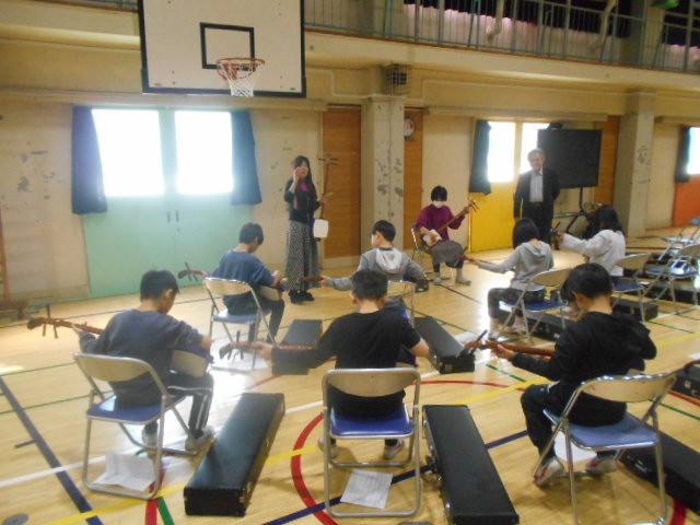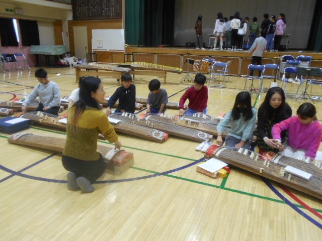 学習のまとめに、「さくら」を演奏しました。和楽器の素敵な音色が体育館を包み込んでいました。