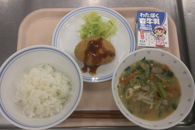 2月10日 ごはん 呉汁 豆入りコロッケ ボイルキャベツ 牛乳