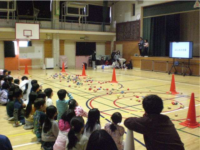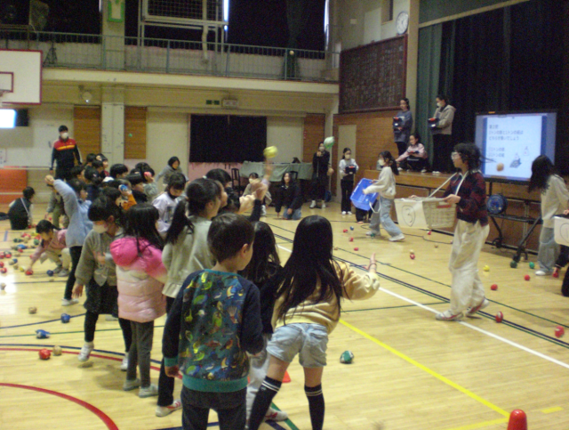 給食後に体育館で集会委員会の企画・運営によるお楽しみ集会が開かれました。