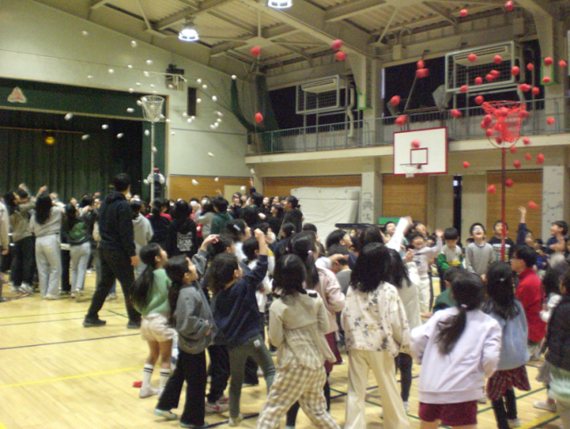 6年生に1年生の時を思い出してもらおうと企画した玉入れ勝負では、僅差で負けてしまいましたが、