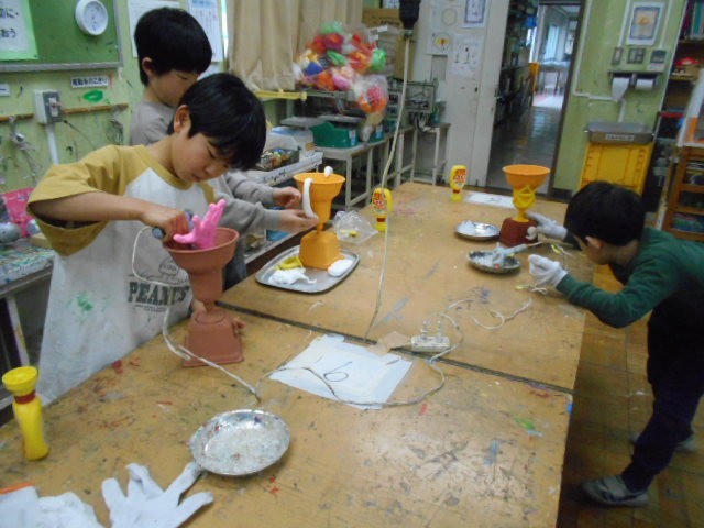 4年生の図画工作科の学習のまとめとして、自分へのトロフィーづくりを行っています。