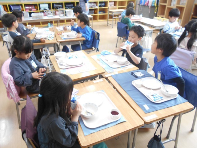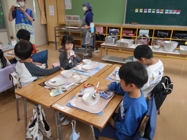 給食を食べる前から子どもたちはとてもワクワクしている様子が見られました。