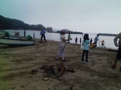 雨もあがって薄日もさしてきました。田中浜て貝拾いをしたり、清掃活動をしたりと有意義な時間を過ごしました。