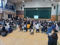 全員が体育館に集まって朝会をしました。みんな元気で1日過ごせそうです。