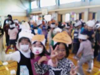 今日はハロウィンパーティーです。一年生に一生懸命作ったカードをわたしました。