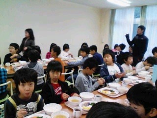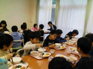 朝食の時間です。今日は和食です。卵焼きがおいしいという声が聞こえてきます。