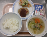 今日はうま煮丼とキャベツと油揚げ、わかめの入った味噌汁と、ブルーベリーヨーグルトでした。うま煮丼は、たっぷりの野菜と高野豆腐を煮て、ごはんにのせました。しっかりと味がついているので食べやすく、白いごはんが進みました。ブルーベリーヨーグルトは甘さを控えめにしました。冷たくておいしかったです。