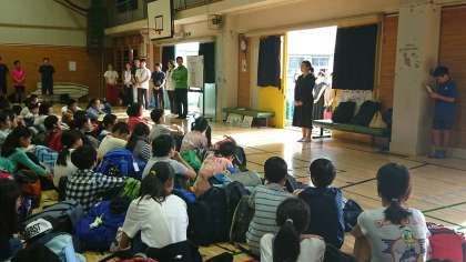 9月18日朝、出発式の担当児童のしっかりとした司会進行で、いよいよ3泊4日の宿泊体験教室が始まりました。実りある一生の思い出となる4日間にできるように、一人一人が前向きに取り組んでほしいと思います。