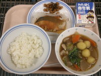 12月18日 みそラーメン たこ焼きポテト みかん 牛乳