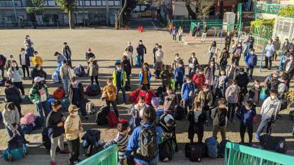 10月24日朝、八ヶ岳への出発式。待ちに待った自然宿泊体験教室の朝を迎えました。担当児童のしっかりとした司会進行で、いよいよ2泊3日の自然宿泊体験教室が始まりました。