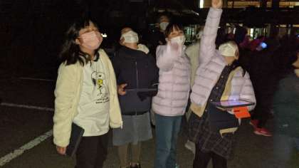 満月の月明かりで空は明るかったものの、北極星やカシオペア座、はくちょう座、スバル等の星々をはっきり確かめることができました。