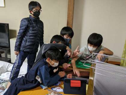 2日目夜は明日の帰り支度を済ませてから21時開始です。班長だけでなく、部屋のみんなで画面を見ながら参加していました。