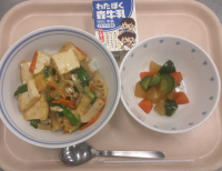 豆をたくさん使用した一汁二菜の献立です。呉汁は、茹でた大豆を細かく刻んで、具だく...
