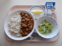 菊花ごはん 高野豆腐の揚げ田楽 じゃが芋とわかめのみそ汁 豆乳黄な粉ゼリー 牛乳