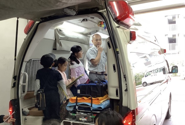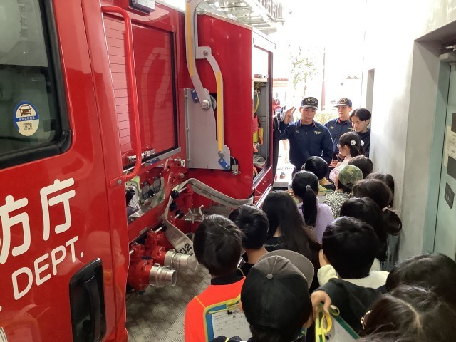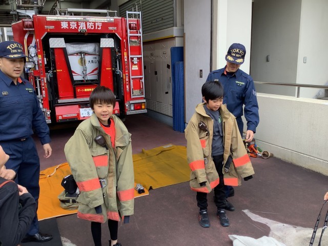 3年生は、社会「わたしたちのまちの消防署」の学習で、目黒消防署大岡山出張所に見学に行きました。ポンプ車や救急車、を間近で見せていただいたり、防火服の上着を着せていただいたりしました。また、消火器体験をしたり、実際に火災が起きた時の救助をする様子を見せていただきました。大岡山出張所の皆様、ありがとうございました。