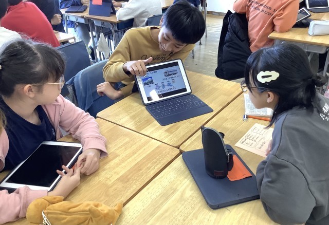 5年生、6年生は、のびっこタイムの時間に第3クールで調べてまとめたことを伝え合いました。