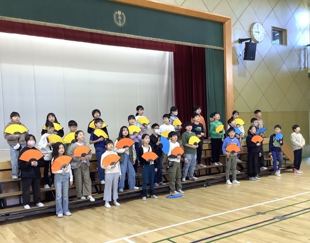 4年生は、運動会で使った扇子を持って学芸発表会の練習に取り組んでいます。「竹取物語2025」という台本で群読が中心です。どのような発表になるか、今から楽しみです。