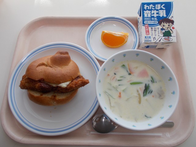 フィッシュバーガー 豆乳スープ 果物(早香) 牛乳
