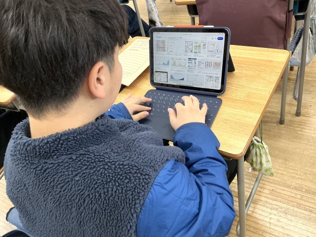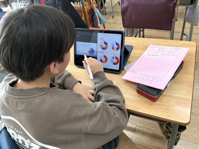 中学年、高学年の児童は、調べたことについて表やグラフを活用して説明する姿も見られます。