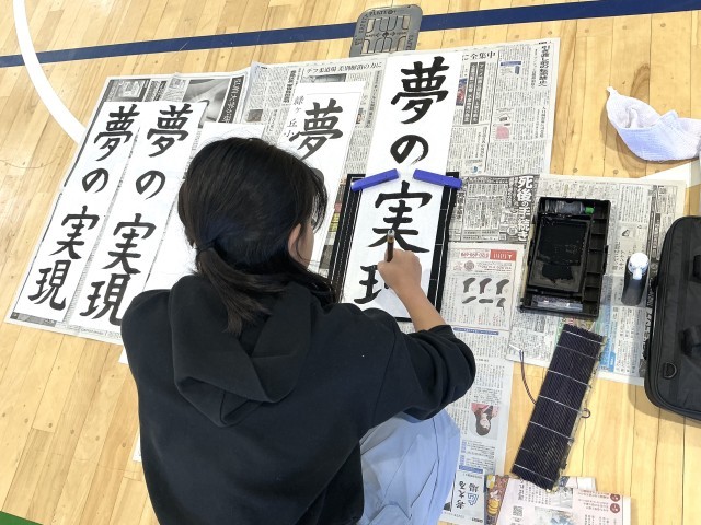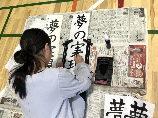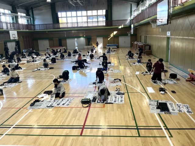 5年生、6年生は体育館で書き初め会をしました。冬季休業日中にしっかり練習して、書き初め会に臨んでいました。