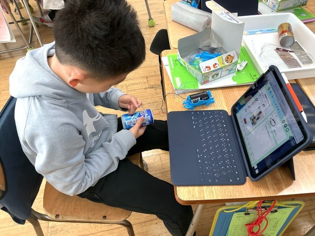 3年生は、理科「電気の通り道」の学習をしています。電気を通すものと通さないものを、電気の回路を使って実験して比べながら調べていました。