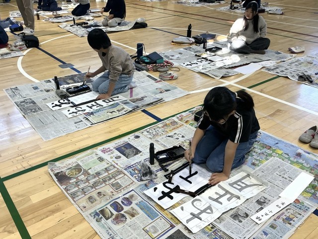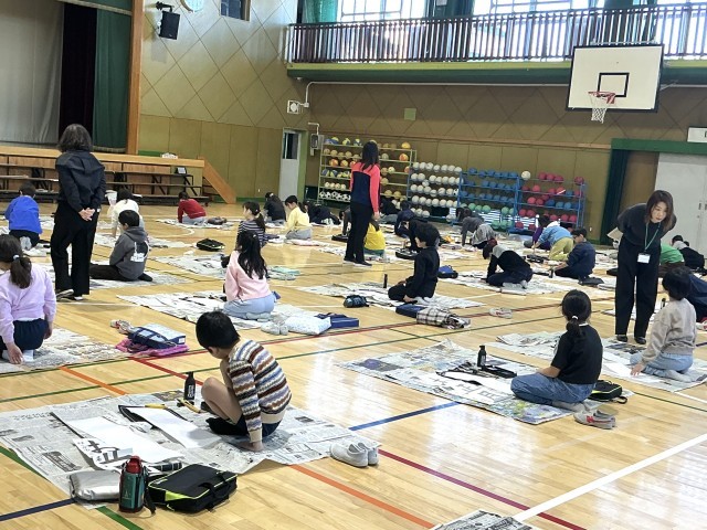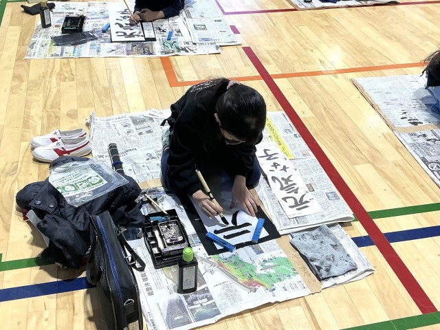 3年生、4年生は、体育館で書き初め会を行いました。3年生は初めての毛筆書き初めです。心を落ち着けてお手本をよく見て書きました。