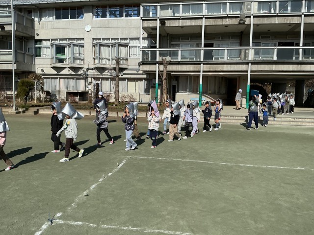 予告なしの避難訓練を行いました。地震で放送施設が壊れた想定で、先生方が各階に知らせに行き避難をしました。