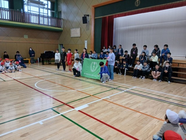 卒業する6年生に向けて6年生を送る会を行いました。各学年の出し物はよく工夫されていて、6年生への「ありがとう」と「さようなら」の気持ちが伝わったと思います。出し物の次に緑ヶ丘小の校章旗が、6年生から5年生へ引き継がれました。これからは区旗と校旗は毎日5年生が掲揚します。