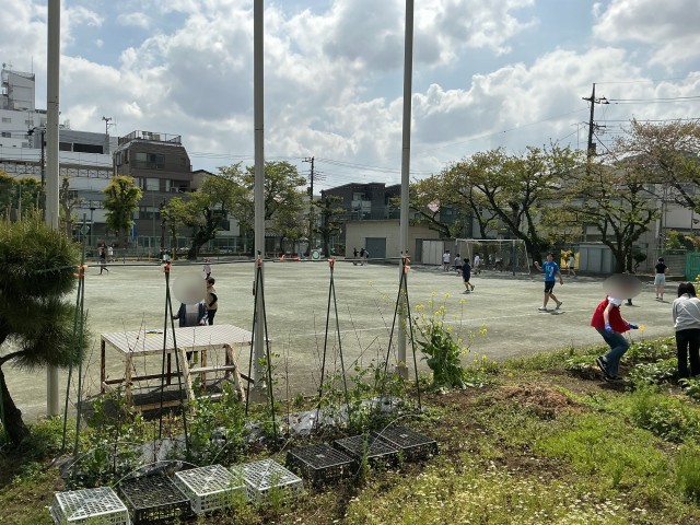休み時間には、多くの子が外に出て思い思いの過ごし方をしていました。