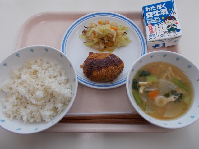 ごはん ポテトコロッケ 塩昆布と野菜の和え物 みそ汁 牛乳