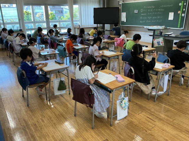 普段のテストと違い、問題用紙と回答用紙が別なので、少し戸惑っている様子もありましたが、集中して取り組んでいます。