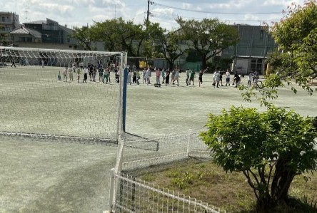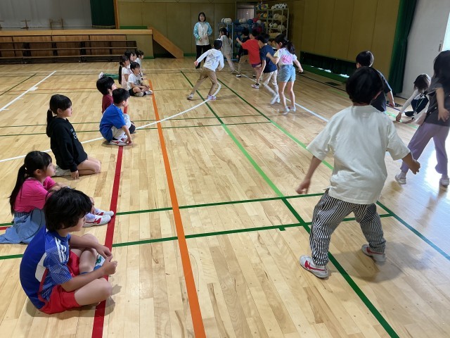 今日は、今年度最初のパワーアップタイムの日。各学年が、ボール投げや上体起こし、両足ジャンプなど、各スポットに分かれて体力向上の活動を行います。