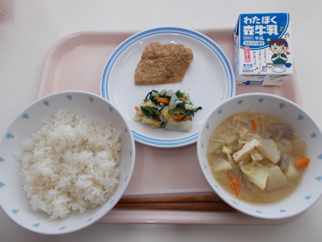 ごはん 魚のごまみそ焼き のり和え 呉汁 牛乳