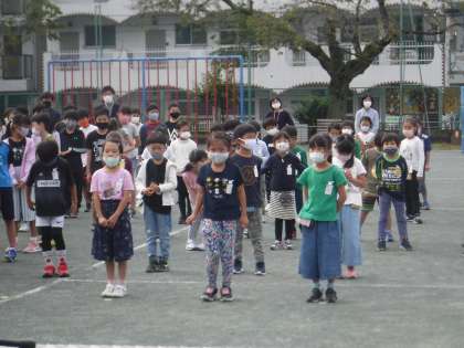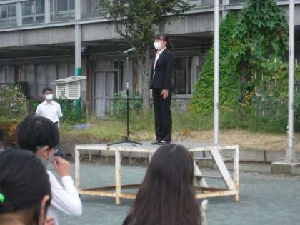久しぶりに全校そろって校庭に整列しました。落ち着いて整列できて立派です。新たなスタートにふさわしい姿で感心しました。