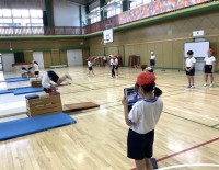 運動会を来週の(土)に控え、1・2年生は校庭で表現と団体競技の練習をしました。団体競技「ダンシング玉入れ」は、エビカニクスの曲にのって元気に踊って玉入れをしました。