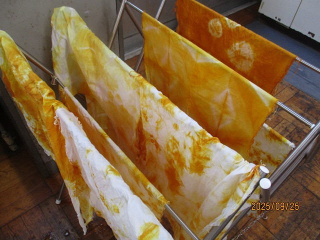 染めた布はこの後、何に変身するのでしょうか。展覧会で出来上がりを楽しみにしていてください。