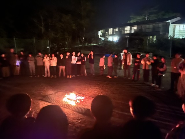 夕食の後は、楽しみにしていたキャンプファイヤー。レク係さんが考えたプログラムを全力で楽しみました。