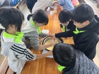 朝会後に朝ご飯を食べ、荷物の整理をしてオオムラサキセンターに来ています。オオムラサキセンターでは、珍しい昆虫や国蝶であるオオムラサキの幼虫を見付け、大喜びでした。