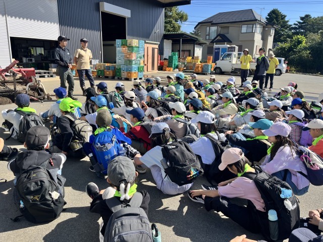 農家のお仕事の大変さをお話ししていただき、畑に入ってじゃがいも掘りです。始めはなかなか見付けられませんでしたが、一つ見付けると芋づる式に次々と。たくさんのお土産、期待しておいてください。