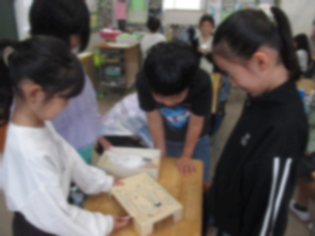生活科の学習で、動くおもちゃ作りを行っています。この学習では、身近にある物を使っておもちゃを作ることで遊びや自然のふしぎさに気付いたり、みんなで楽しみながら遊びをつくり出そうとしたりすることを目指しています。さらに、学習の最後には1年生に遊んでもらい、楽しんでもらいたいという子どもたちの願いもあります。